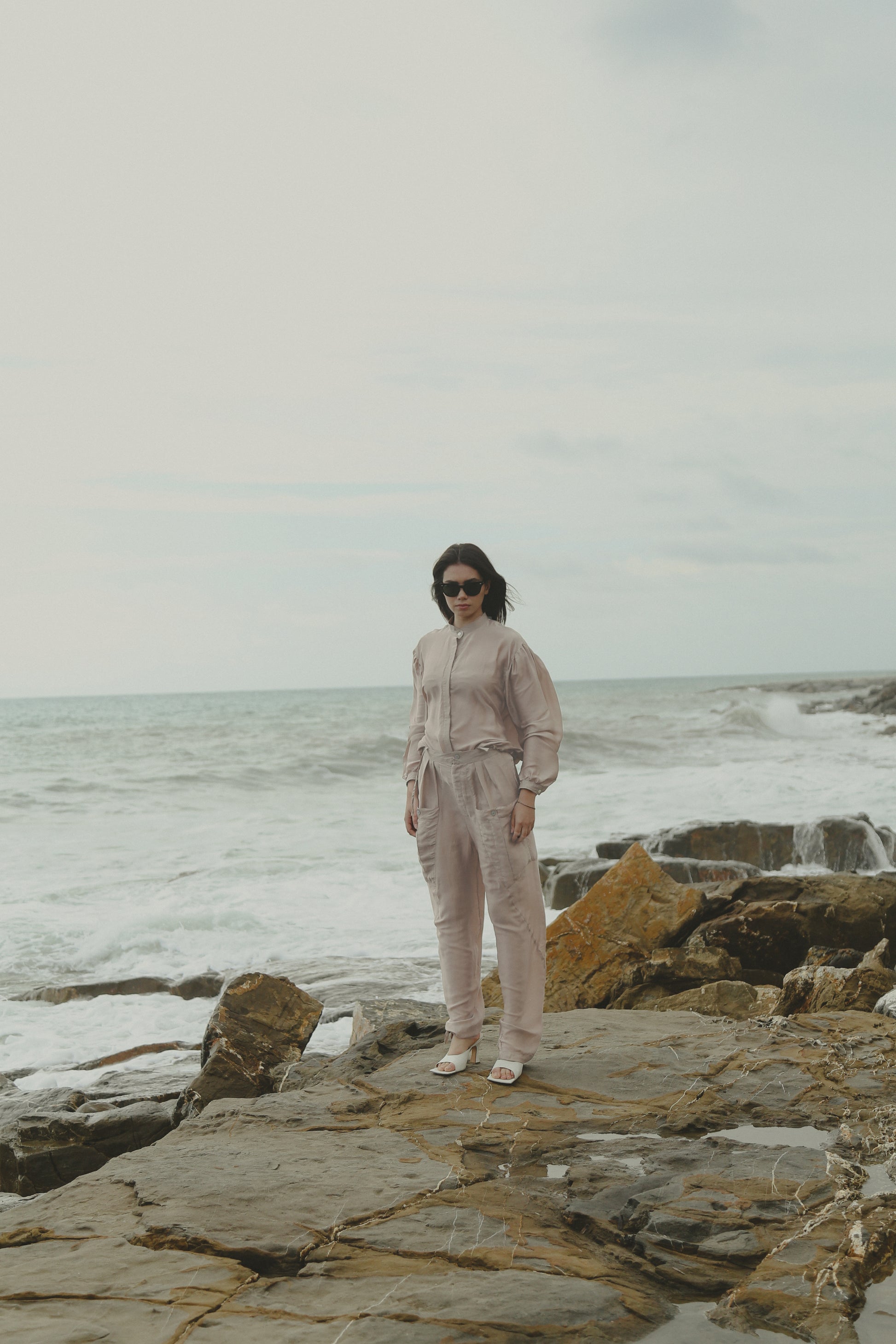 Introducing our stunning silk set in a timeless shade of beige, featuring an oversize shirt and high-waisted relaxed trousers. Crafted from the finest silk fabric, this set combines luxury and comfort to create an effortlessly chic look.